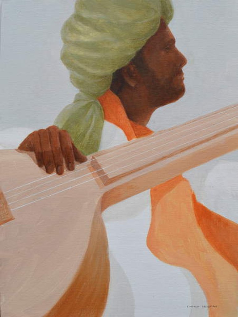 Product images of Sitar player, green turban, 2019