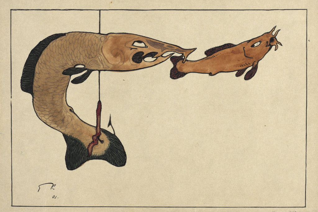Untitled (Two fishes, one on a hook), 1901. Found in the collection of Zentrum Paul Klee, Bern.