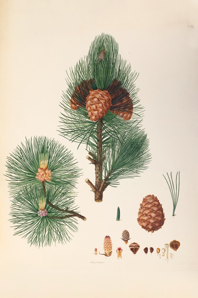 From 'A description of the genus Pinus' by Aylmer Bourke Lambert (1803-1807) (LSL ref: P 582.4p206/214 LAM)