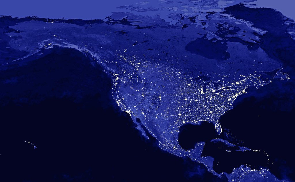 Product details Night time satellite view of the United States and North America