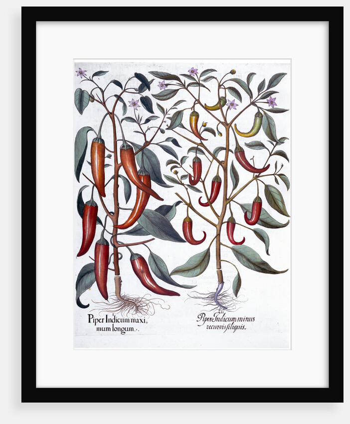 Peppers, 1613. 1.Piper Indicum maximum longum; 2.Piper Indicum minus recurvis filiquis. From Hortus Eystettensis by Basil Besler (1561-1629), published in 1613.