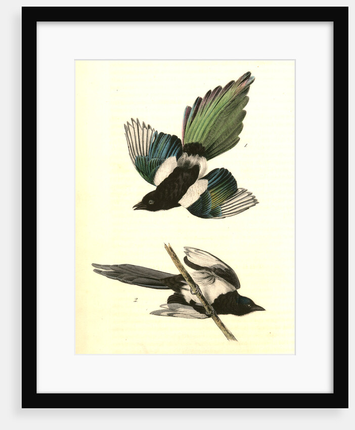 Common Magpie. 1. Male. 2. Female., Audubon, John James, 1785-1851