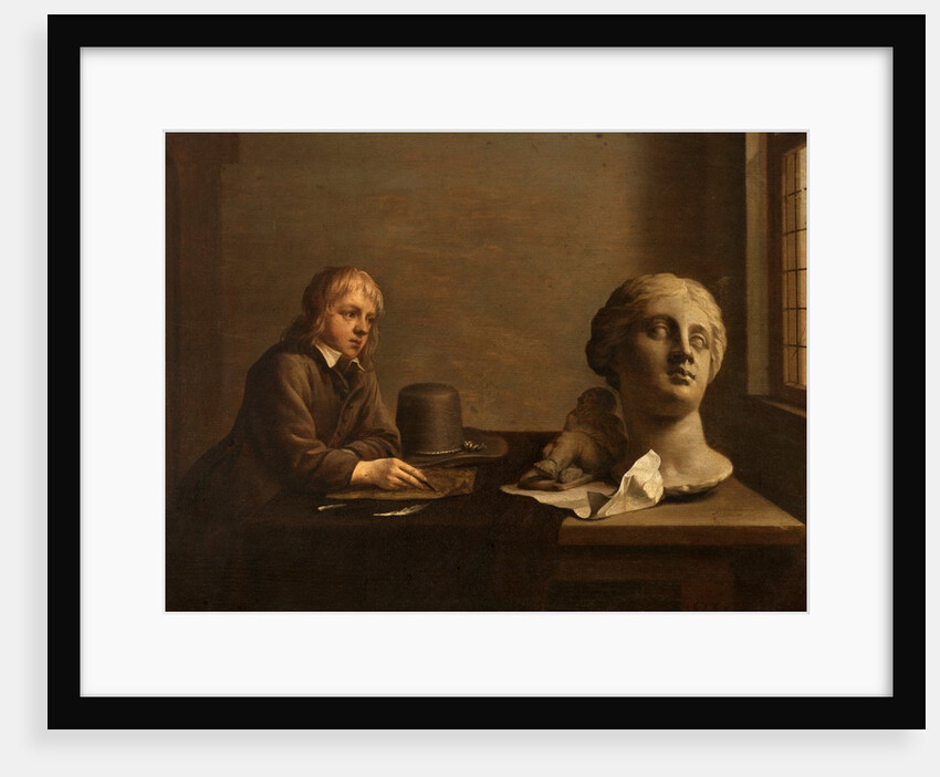 Young artist, drawing from casts, including a putto by Duquesnoy, 1656