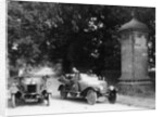 1920 Calthorpe Sporting 4 and Morris Bullnose, Little Compton, Warwickshire, (1920s?). Three people in the Calthorpe pass the Bullnose, driven by a woman.