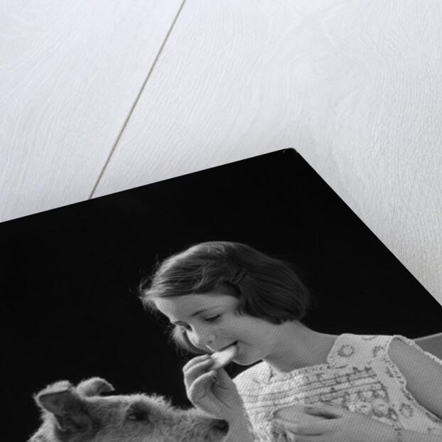 Product details 1920s 1930s Girl Eating Cookie With Dog