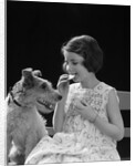 Product images of 1920s 1930s Girl Eating Cookie With Dog