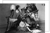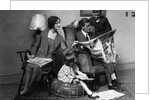 Product images of 1920s Family of Four Mother Father Son Daughter in Living Room Reading Newspaper Together