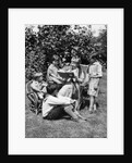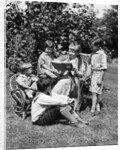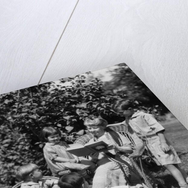 Product images of 1920s Older Woman Grandmother Sitting In Wicker Chair Reading Book To Four Boys Girls Grandchildren