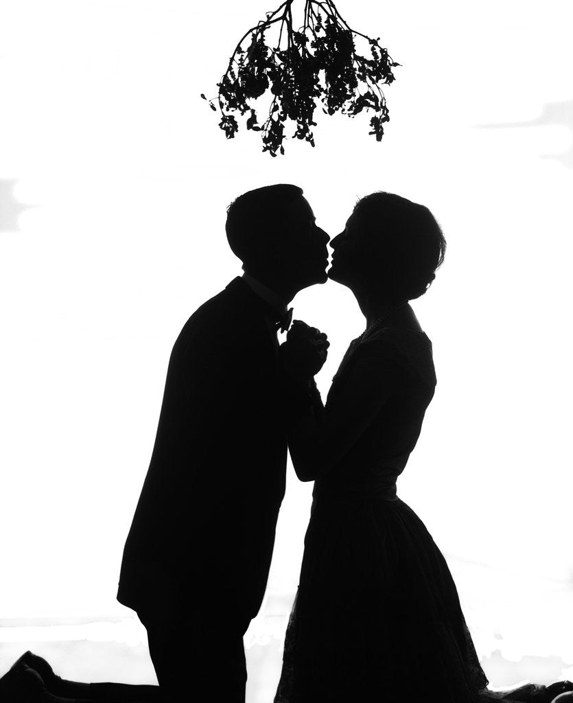 Product images of 1920s silhouette couple kissing under christmas mistletoe