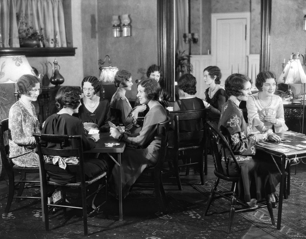 Product images of 1930s 12 Young Women At Bridge Party In A Living Room Sitting Four To A Table