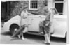 Product images of 1930s 1940s senior couple putting golf clubs in convertible car by stone house