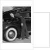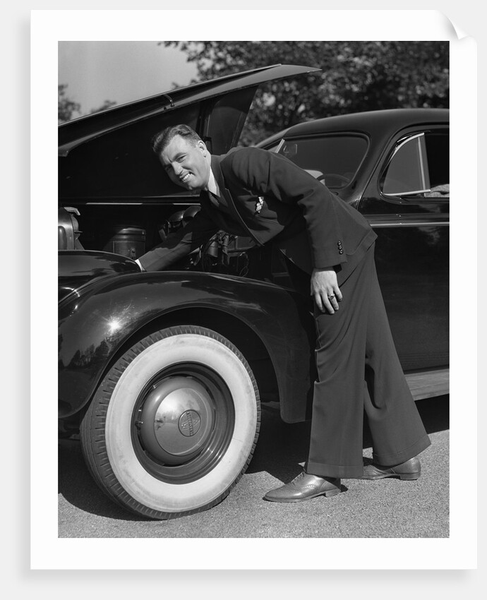 Product images of 1939 1940s Man Wearing Suit And Tie Checking Engine Under Automobile Hood