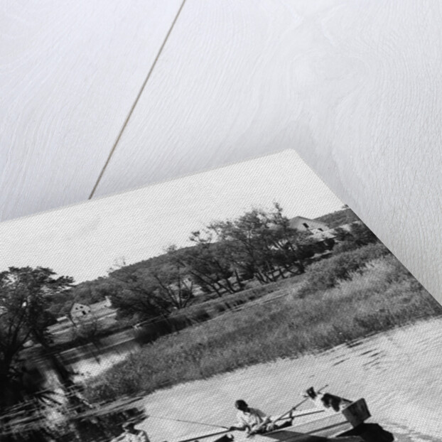 Product details 1940s 1950s Pair Of Boys In Rowboat With Collie Fishing In Farm Area