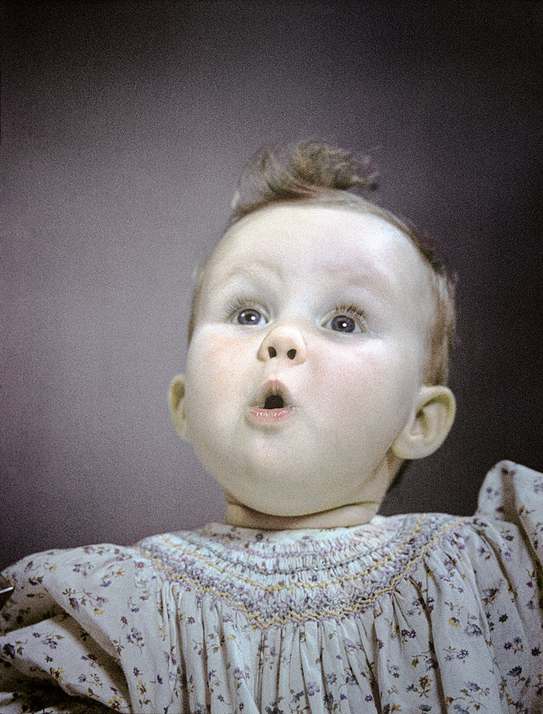 1940s 1950s portrait baby cute facial expression of awe wonder surprise