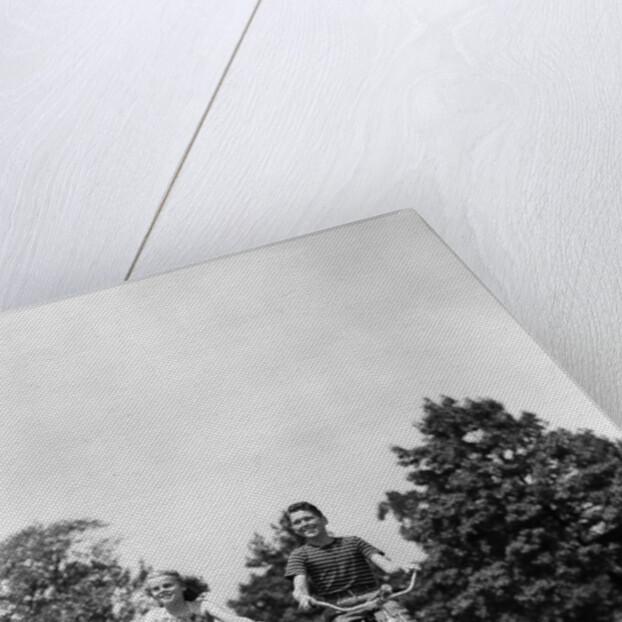 Product images of 1940s Boy Girl Riding Bikes Down Country Lane