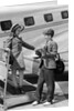 Product images of 1940s Boy Girl Walking Off Boarding Ramp Of Airplane Boy Holds Toy Plane Dress Fashion Suit Tie