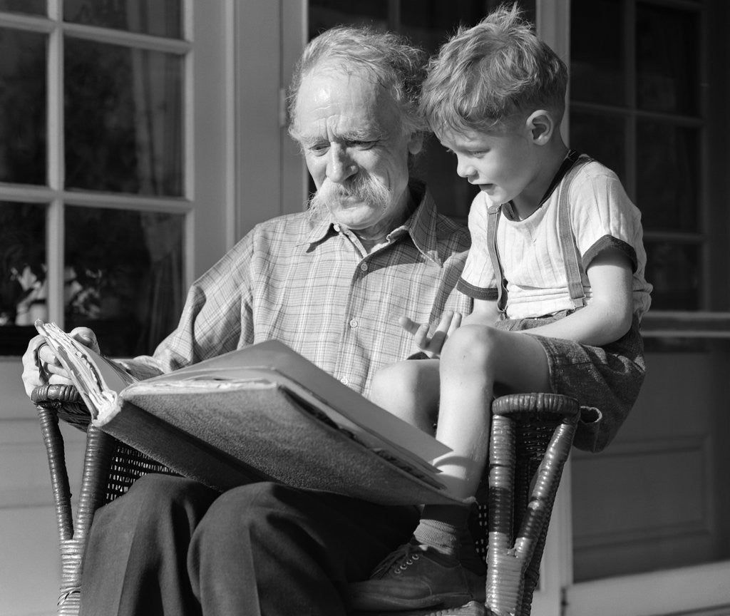 Product images of 1940s Grandfather On Porch Reading To Grandson