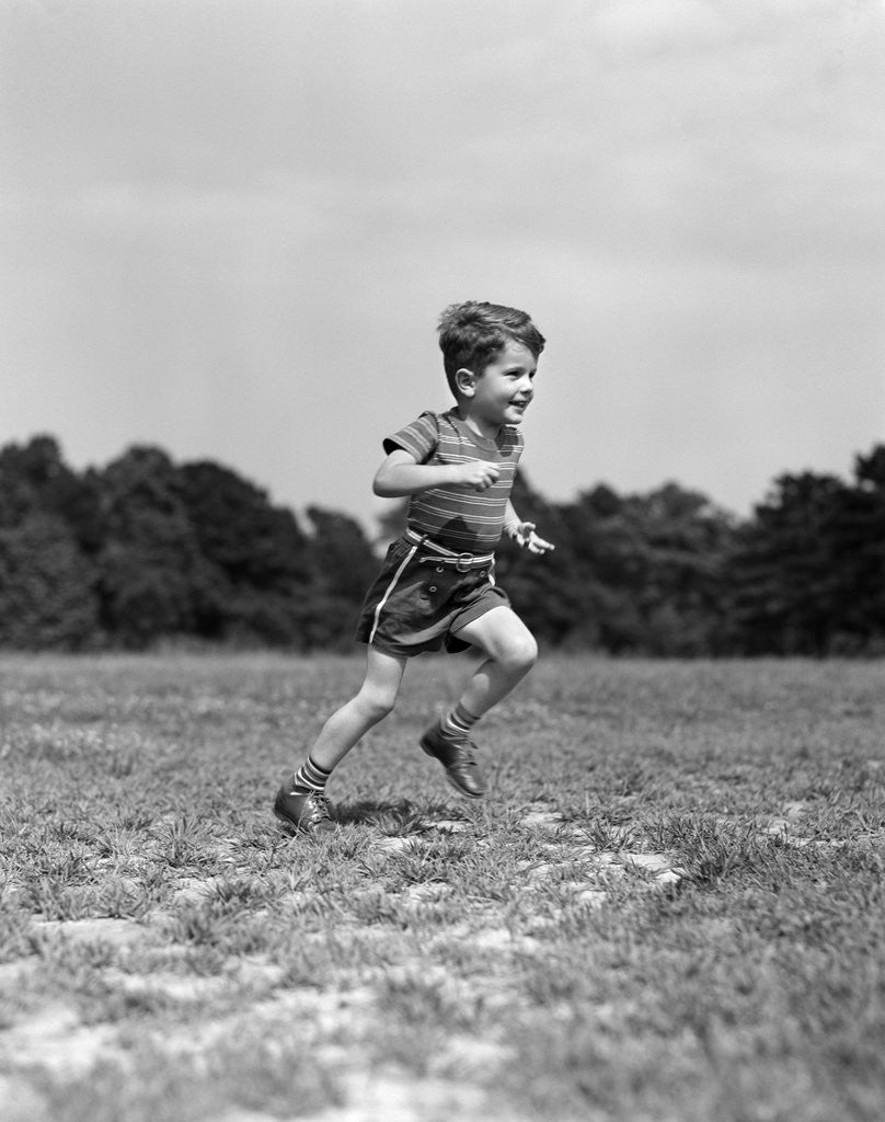 Product details 1940s Little Boy Running Playing On Grassy Field