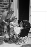 Product details 1940s Mother And Daughter With Doll In Stroller
