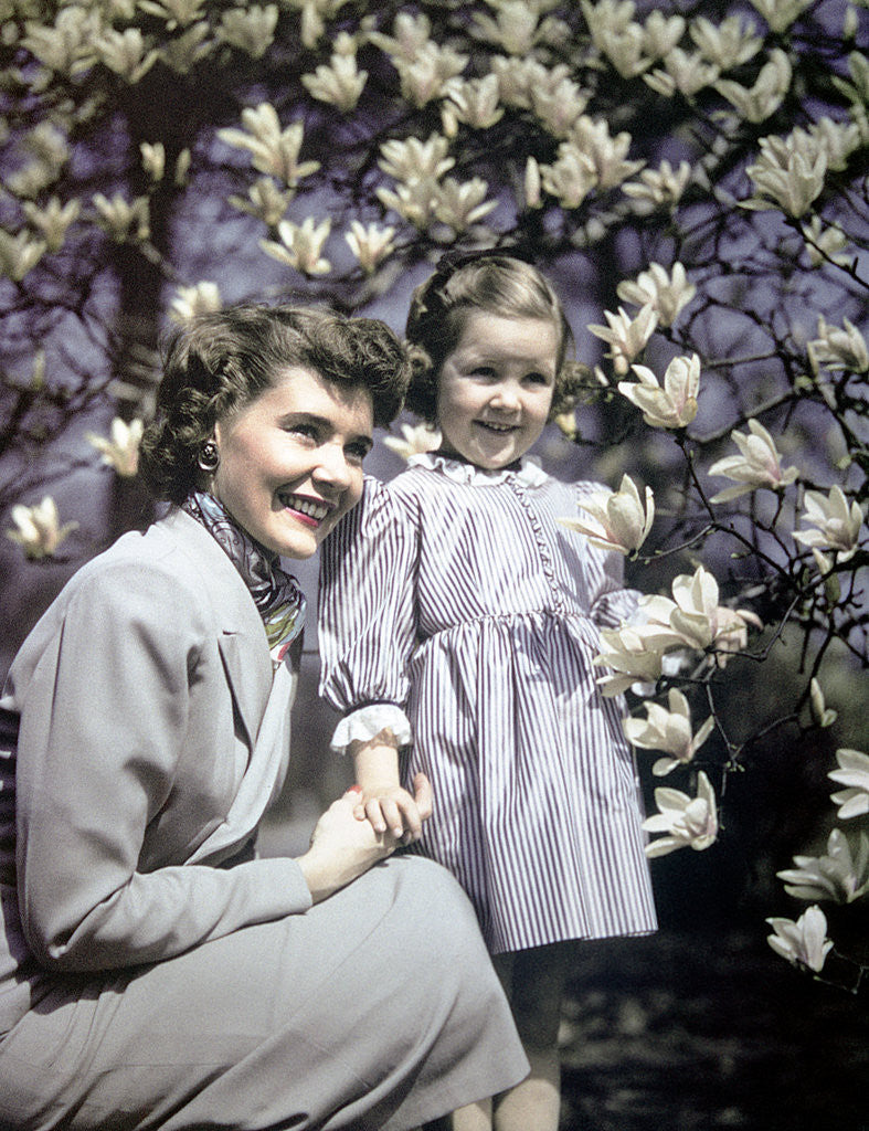 1940s Woman Mother Girl Daughter By Magnolia Blossoms Tulip Tree