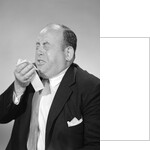 Product details 1950s 1960s Bald Man Sneezing Handkerchief To Nose