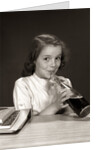 Product details 1950s 1960s School Girl Using Straw Drinking Carbonated Beverage From Bottle