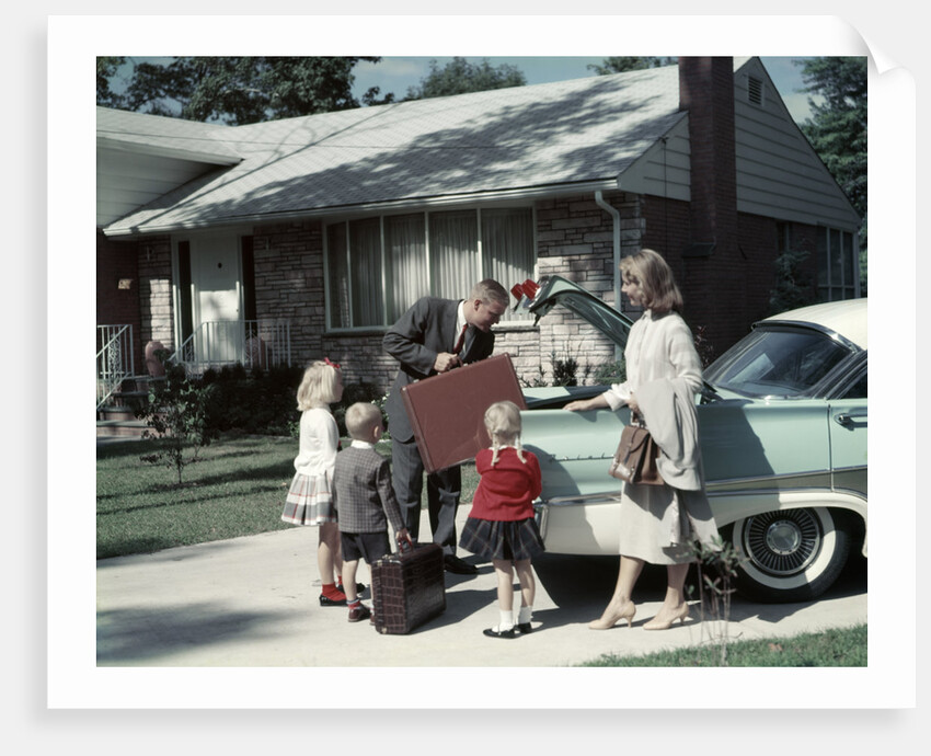 1950s 1960s Suburban Family Loading Ford Four Door Sedan Automobile For Trip