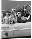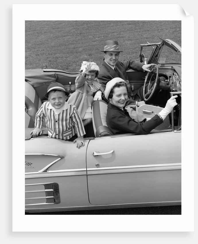1950s Family Portrait Mother Father Son Daughter In Chevrolet Convertible Automobile
