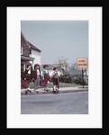 Product images of 1950s Kids On Suburban Neighborhood Sidewalk About To Cross Street By School Crossing Sign