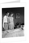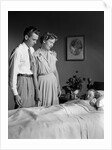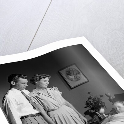Product details 1950s Mother And Father Watching Sleeping Daughter
