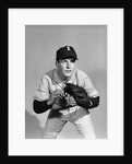 Product images of 1950s portrait baseball player poised for action