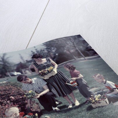 Product images of 1950s Suburban Family Gardening Together In The Springtime