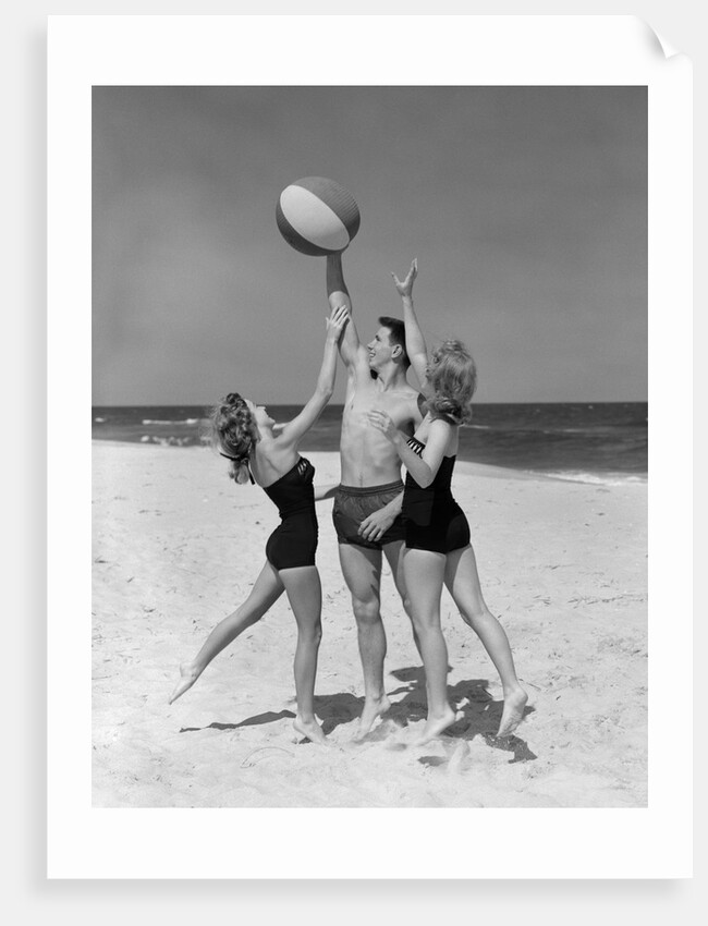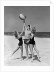 Product details 1950s teens jumping for beach ball wearing swim suits