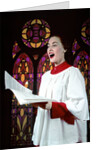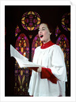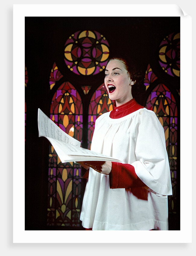 Product images of 1950s Woman Singing Choir Robe Stained Glass Background