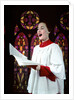 1950s Woman Singing Choir Robe Stained Glass Background