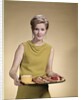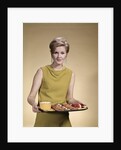 Product images of 1960s Blonde Woman Looking At Camera Serving Snacks Hors d'Oeuvres On Tray