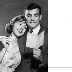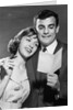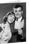 Product images of 1960s couple reading letter happy woman resting head on mans shoulder