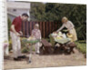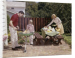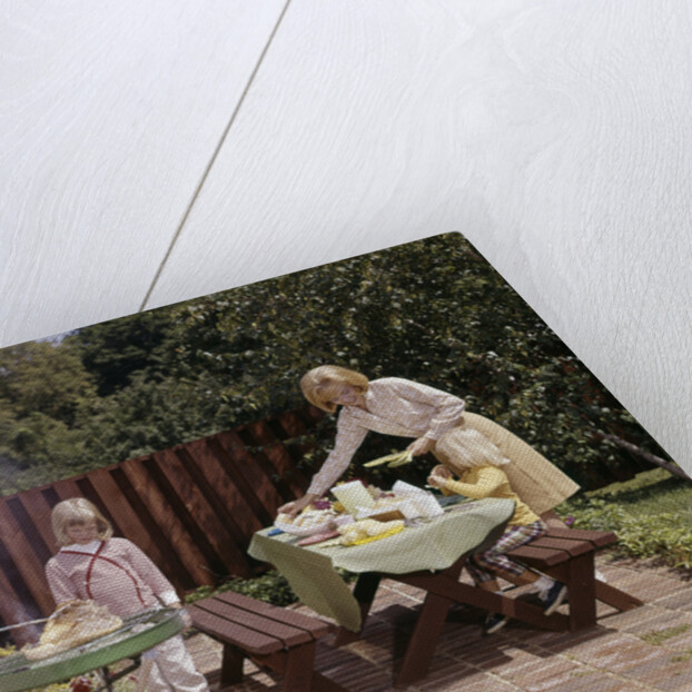 Product images of 1960s Family Father Mother Two Daughters Barbeque In Backyard On Brick Patio