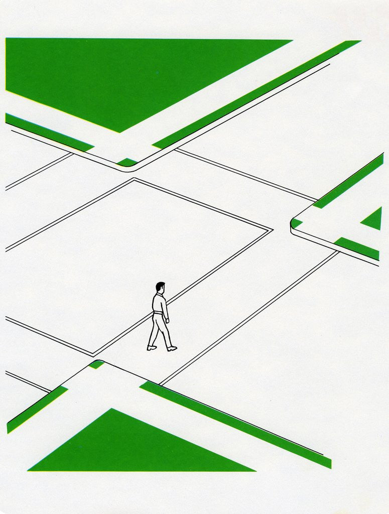 Product details 1960s Illustration of a Pedestrian Crossing the Street.