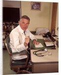 Product details 1960s Man Doctor Pointing Gesturing With Pencil Seated At Desk In Office
