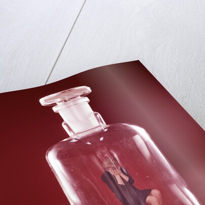 1960s Sad Crying Woman Trapped Inside Glass Bottle
