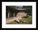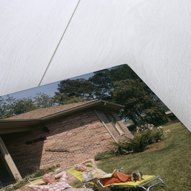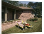 Product details 1960s Senior Couple Lawn Chairs Relaxing In Yard Of A Brick House