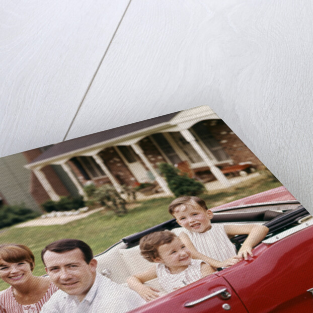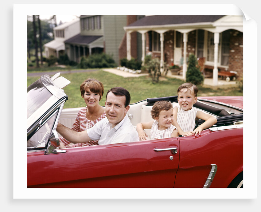 Product images of 1960s Suburban Family Sitting In Red Ford Convertible Mustang