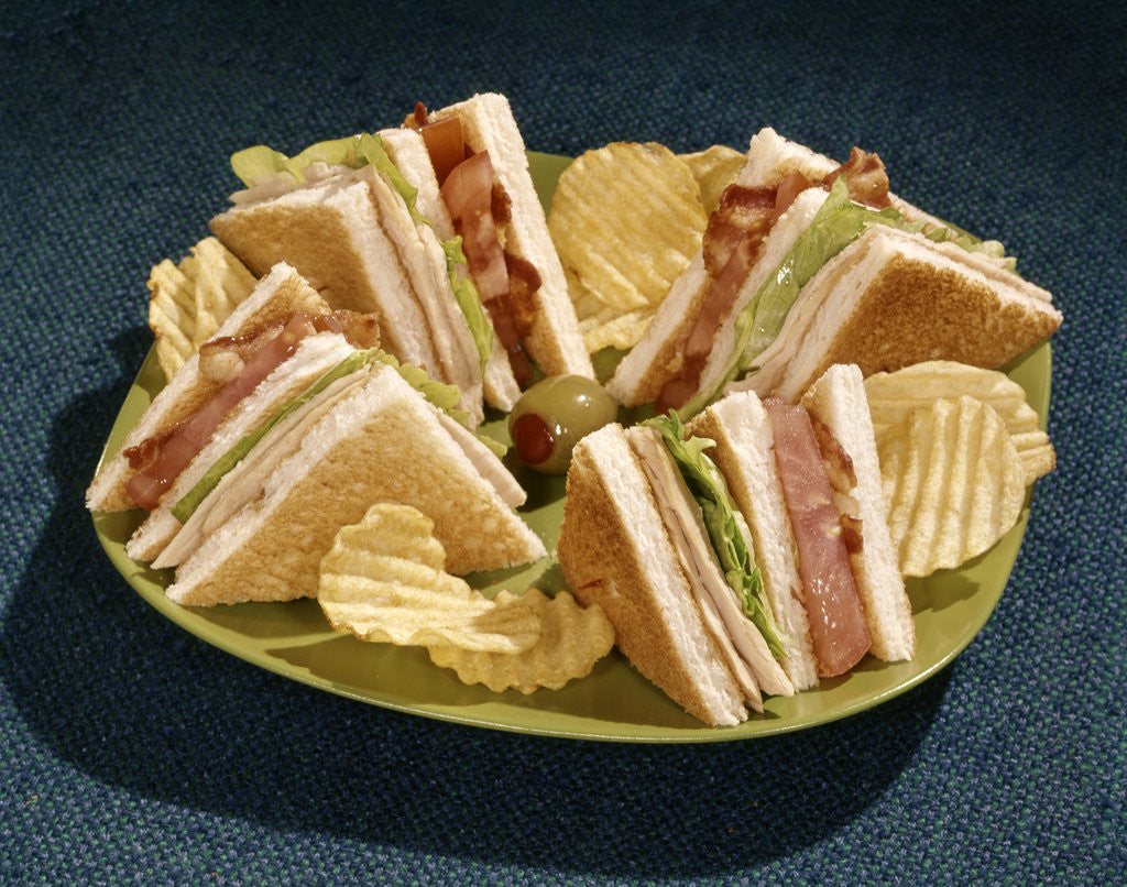 Product details 1960s Toasted Club Sandwich Turkey Bacon Lettuce Tomato Green Plate