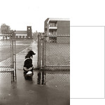 Product images of 1970s Black White Spotted Dog Sitting In Rain Waiting By School Yard Gate For His Owner