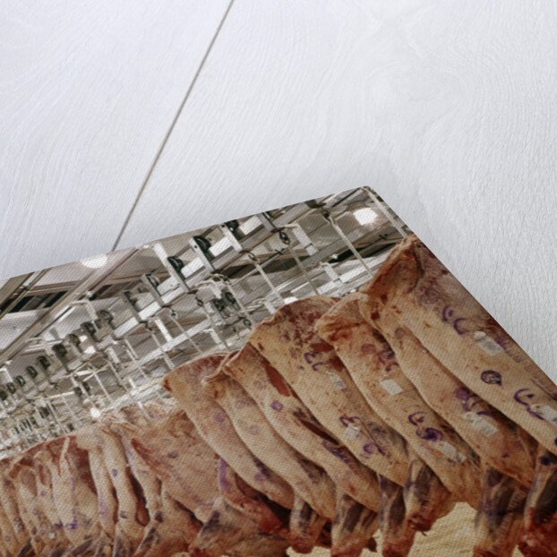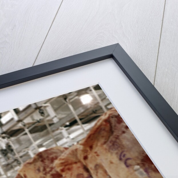 Product images of 1970s Sides Of Raw Beef Hanging In Refrigerated Room Of Meat Packing Plant