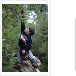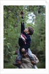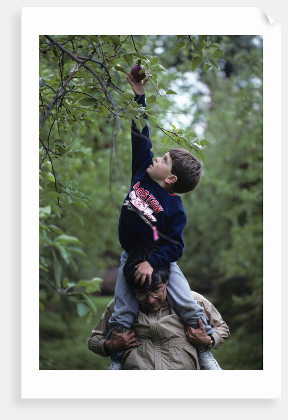 Product details 1980s Boy On Father's Shoulders Reaching For An Apple