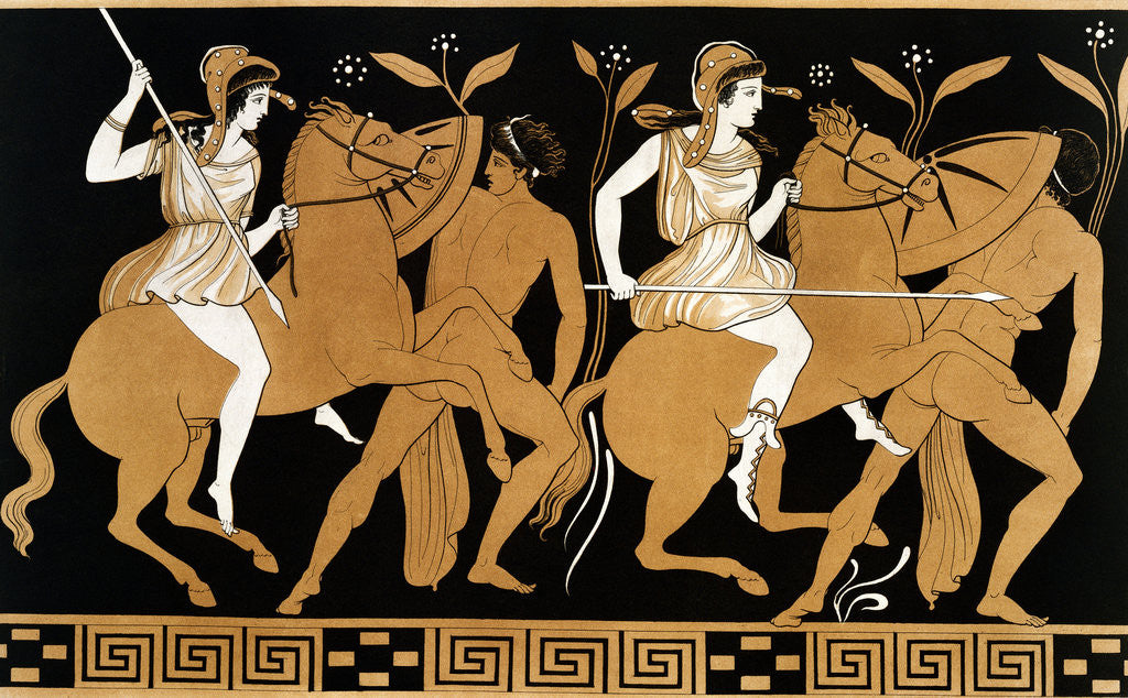 19th Century Greek Vase Illustration of Two Amazons on Horses After Two Youths