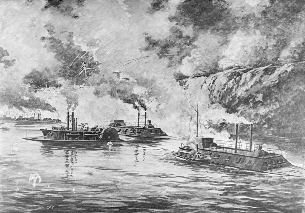 19th-Century Print Showing Rear Admiral Porter's Flotilla Arriving at Vicksburg