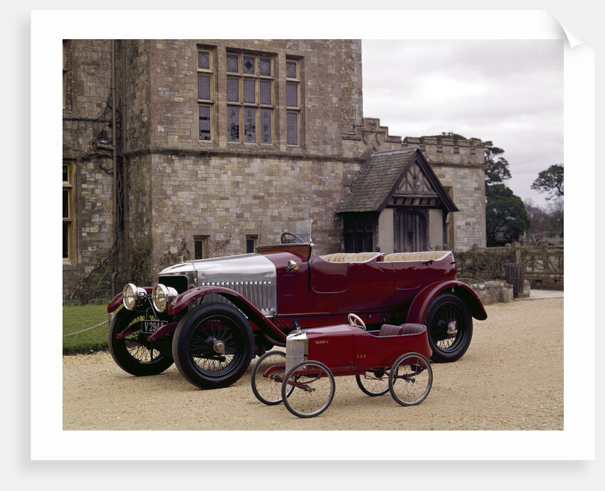 A 1915 Vauxhall Prince Henry. Photographed next to a toy car. This is one of the last built. It is thought to be the fastest of the five Prince Henry's remaining. The Prince Henry was developed from the 3 litre cars entered in the 1908 British 2000 Mile and the 1910 German Prince Henry Trials. It was one of the first true sports cars to be made and evolved just before the First World War into the 30/98 Vauxhall.